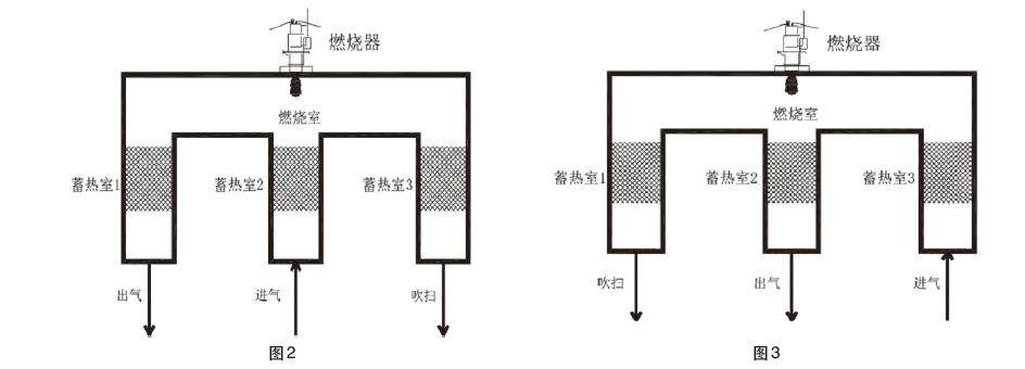 換時(shí)間過長,排出廢氣溫度過高,熱量流失;切換時(shí)間過短,會(huì)造成切換閥及氣缸壽命變短,需要視工況確定切換時(shí)間運(yùn)行規(guī)律為:前一個(gè)流程出氣口為下一個(gè)流程的進(jìn)氣口,前一個(gè)流程吹掃口為下一個(gè)流程出氣口,前一個(gè)流程進(jìn)氣口為下一個(gè)流程吹掃口。如此設(shè)置為了好提高蓄熱體的熱回收